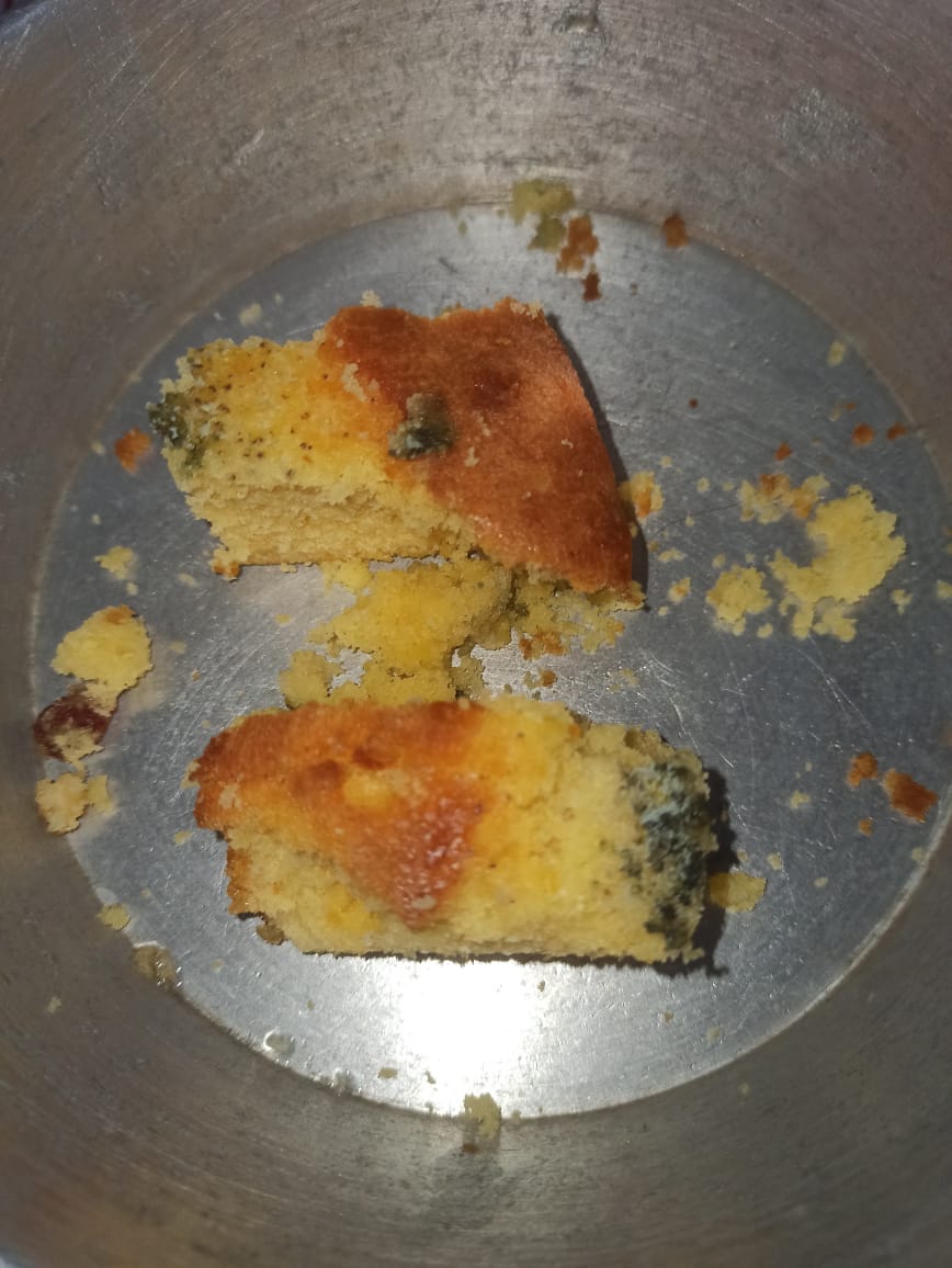 We bought a dry cake from Tariq sweets, Layyah, Punajb. It was too old to have fungus inside. A child is hospitalized due to food poisoning.